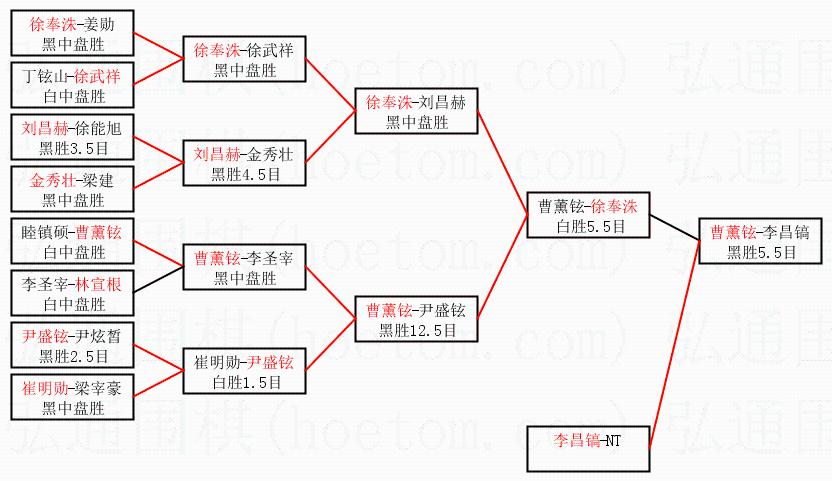 | 1.曹薰铉获得冠军,李昌镐获得亚军。决赛比分:曹薰铉4:1李昌镐。棋局: | ||