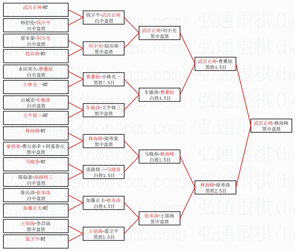| 2.上半区半决赛武宫正树获胜, 比分:武宫正树 1:0 曹薰铉。棋局: | ||