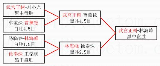 | 2.上半区半决赛武宫正树获胜, 比分:武宫正树 1:0 曹薰铉。棋局: | ||