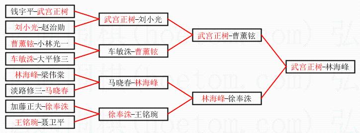 | 1.武宫正树获得冠军,林海峰获得亚军。决赛比分:武宫正树1:0林海峰。棋局: | ||