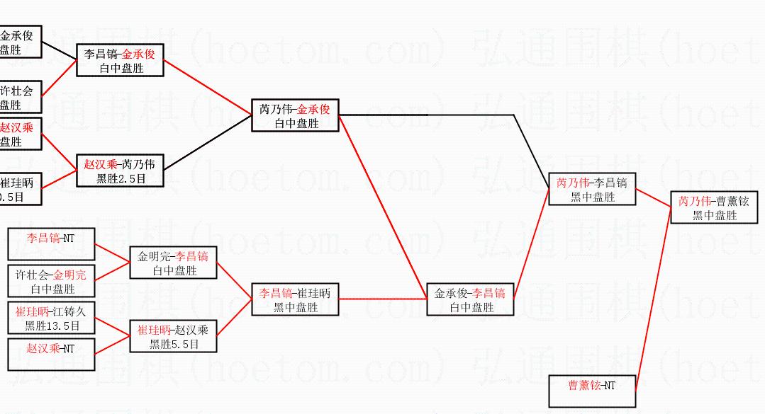 2.上半区半决赛芮乃伟获胜, 比分:芮乃伟 1:0 李昌镐。棋局: