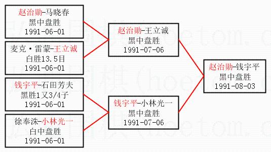 1.赵治勋获得冠军,钱宇平获得亚军。决赛比分:赵治勋1:0钱宇平。棋局: