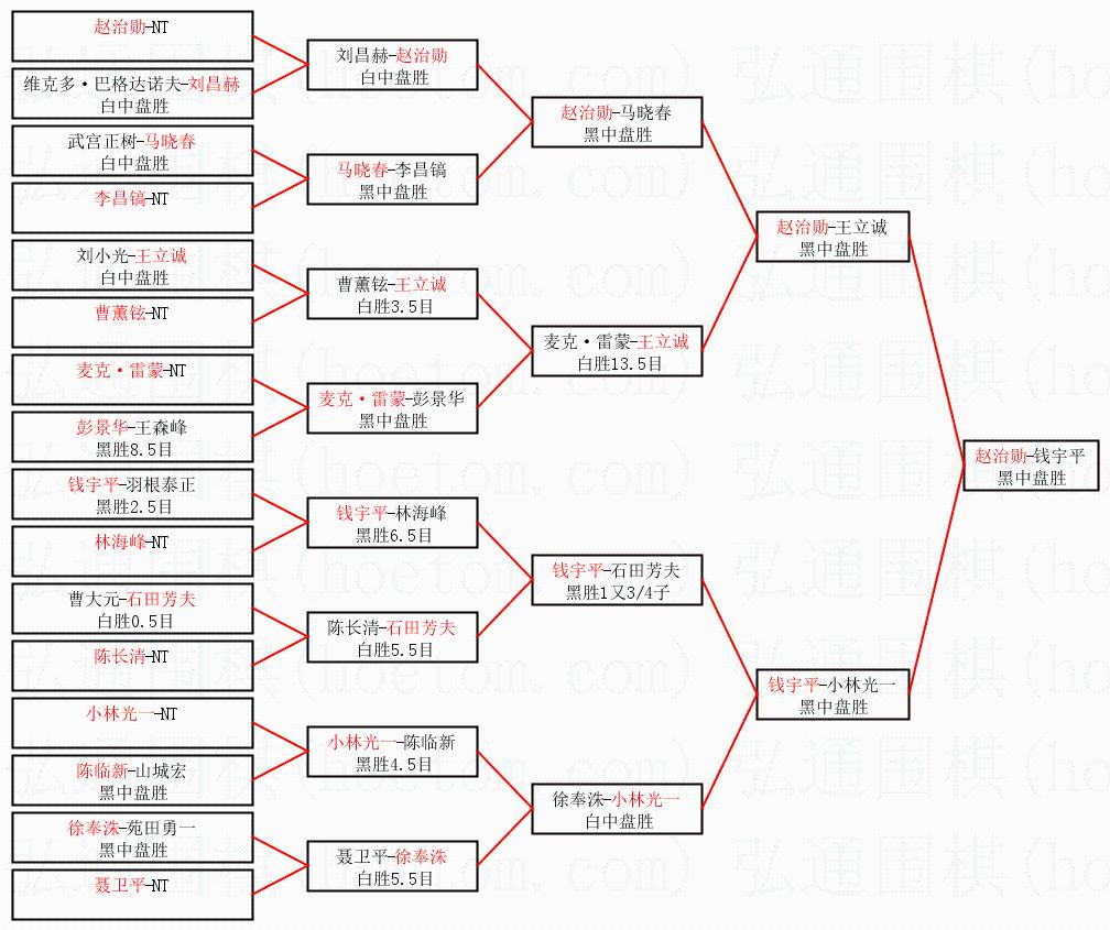 1.赵治勋获得冠军,钱宇平获得亚军。决赛比分:赵治勋1:0钱宇平。棋局: