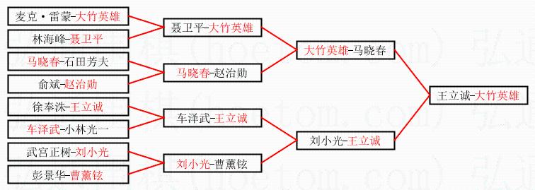 1.大竹英雄获得冠军,王立诚获得亚军。决赛比分:大竹英雄1:0王立诚。棋局: