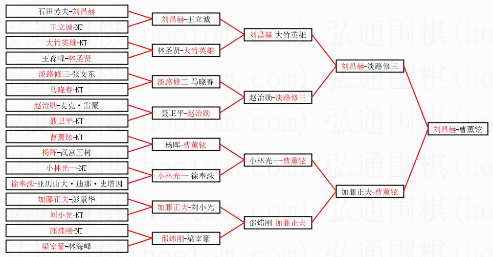 1.刘昌赫获得冠军,曹薰铉获得亚军。决赛比分:刘昌赫1:0曹薰铉。棋局:
