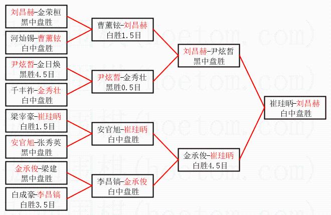 | 1.刘昌赫获得冠军,崔珪昞获得亚军。决赛比分:刘昌赫3:1崔珪昞。棋局: | ||