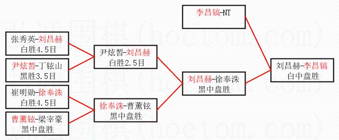 1.李昌镐获得冠军,刘昌赫获得亚军。决赛比分:李昌镐3:1刘昌赫。棋局: