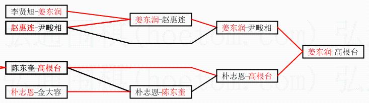 1.姜东润获得冠军,高根台获得亚军。决赛比分:姜东润2:0高根台。棋局: