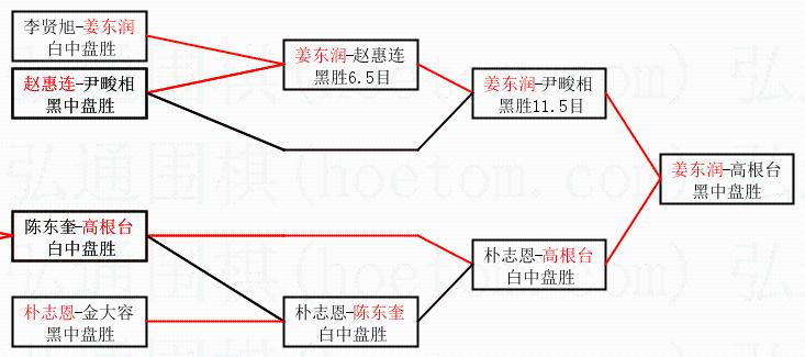 | 1.姜东润获得冠军,高根台获得亚军。决赛比分:姜东润2:0高根台。棋局: | ||