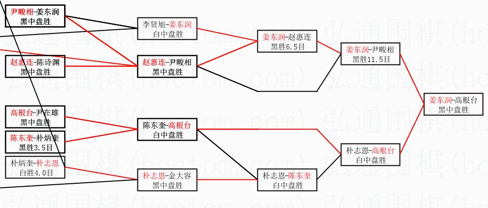 1.姜东润获得冠军,高根台获得亚军。决赛比分:姜东润2:0高根台。棋局: