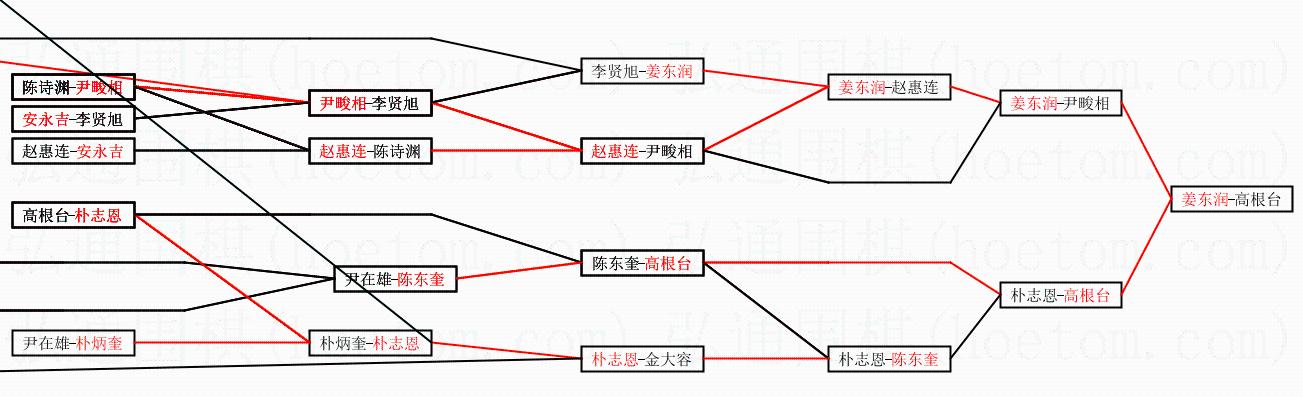 1.姜东润获得冠军,高根台获得亚军。决赛比分:姜东润2:0高根台。棋局: