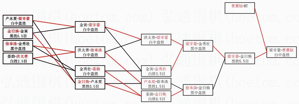 1.曹薰铉获得冠军,梁宰豪获得亚军。决赛比分:曹薰铉3:0梁宰豪。棋局: