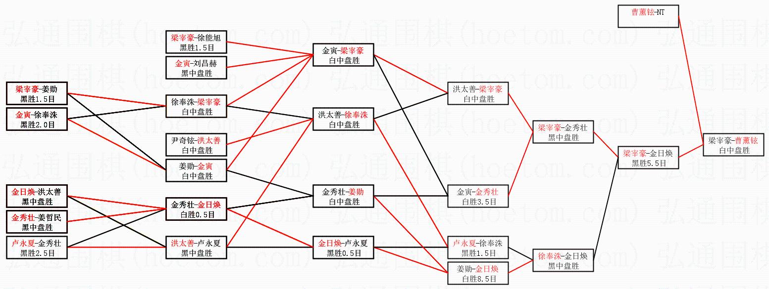 1.曹薰铉获得冠军,梁宰豪获得亚军。决赛比分:曹薰铉3:0梁宰豪。棋局: