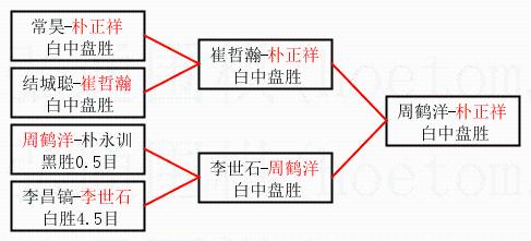2.上半区半决赛朴正祥获胜, 比分:朴正祥 1:0 崔哲瀚。棋局: