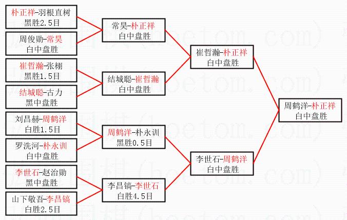 2.上半区半决赛朴正祥获胜, 比分:朴正祥 1:0 崔哲瀚。棋局: