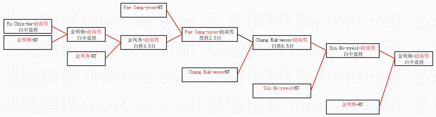 1.赵南哲获得冠军,金明焕获得亚军。决赛比分:赵南哲1:0金明焕。棋局: