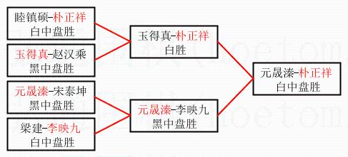 1.朴正祥获得冠军,元晟溱获得亚军。决赛比分:朴正祥1:0元晟溱。棋局: