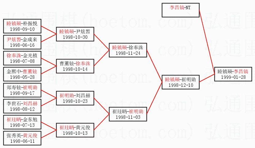 1.李昌镐获得冠军,睦镇硕获得亚军。决赛比分:李昌镐2:0睦镇硕。棋局: