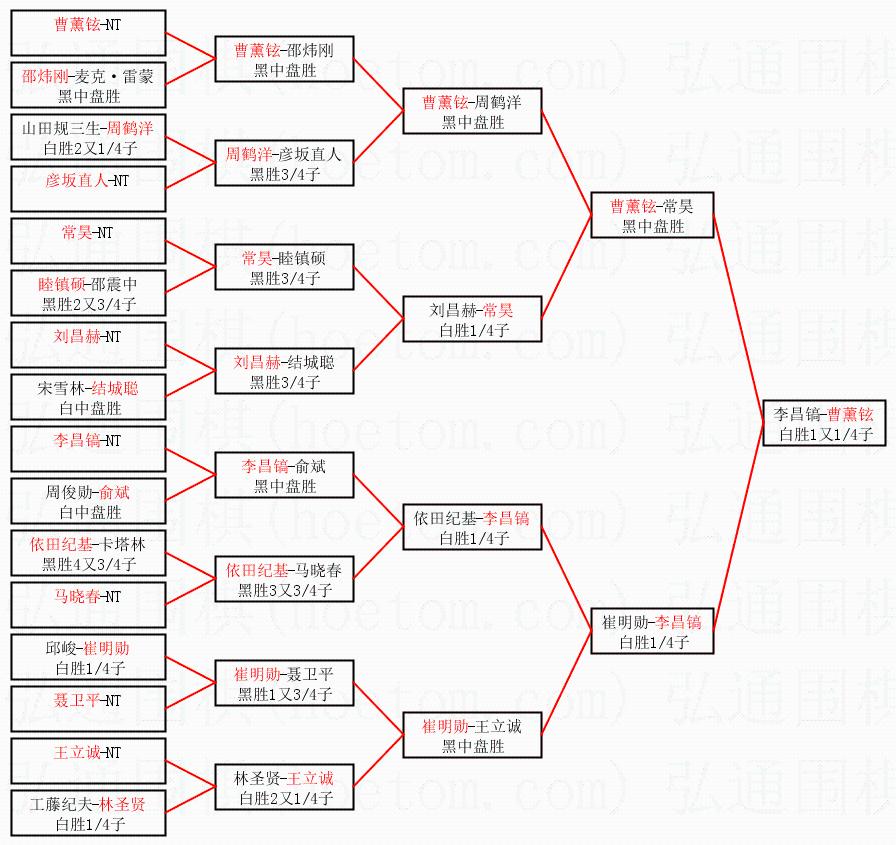 | 2.上半区半决赛曹薰铉获胜, 比分:曹薰铉 1:0 常昊。棋局: | ||