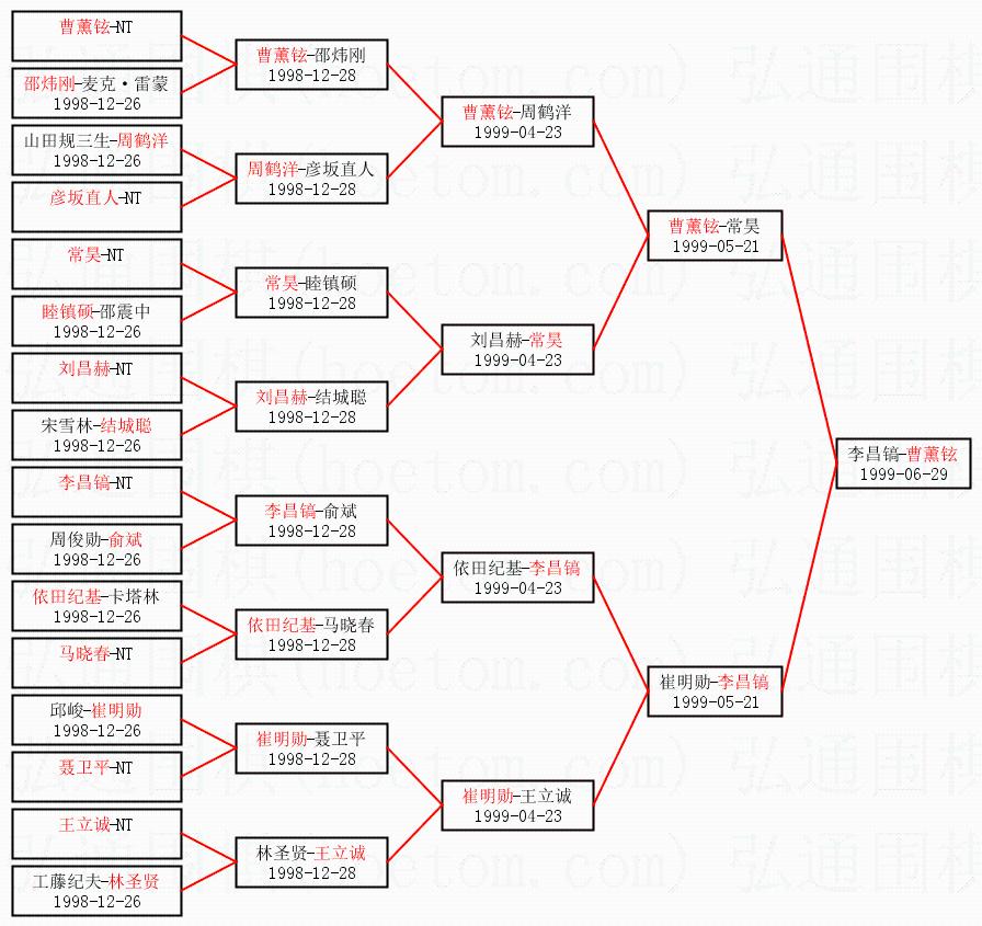 | 1.曹薰铉获得冠军,李昌镐获得亚军。决赛比分:曹薰铉2:1李昌镐。棋局: | ||