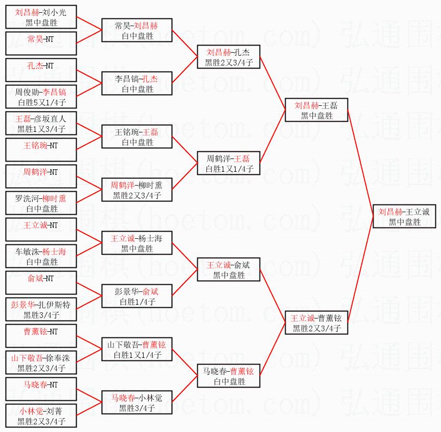 1.刘昌赫获得冠军,王立诚获得亚军。决赛比分:刘昌赫2:1王立诚。棋局: