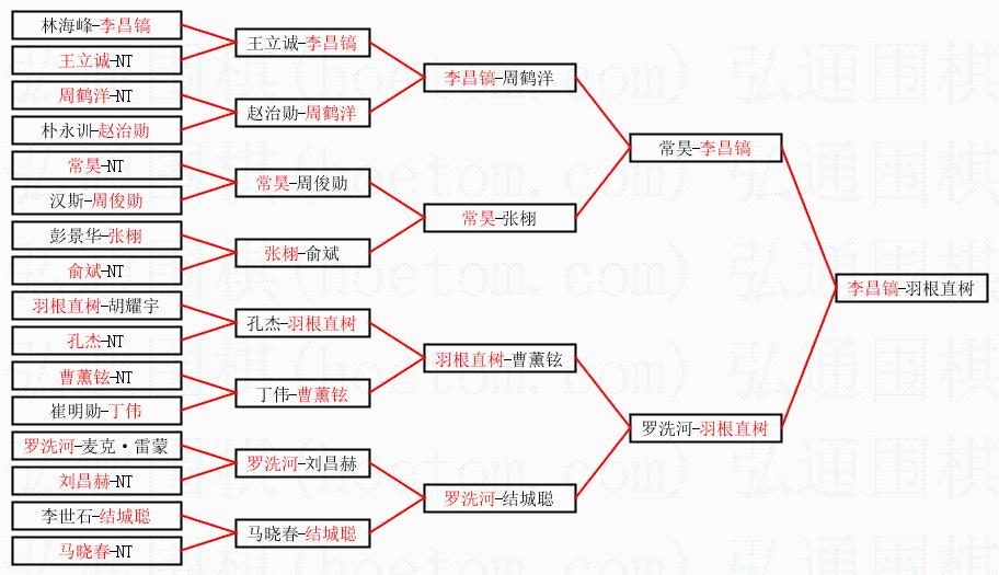 | 1.李昌镐获得冠军,羽根直树获得亚军。决赛比分:李昌镐2:0羽根直树。棋局: | ||