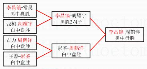 | 1.李昌镐获得冠军,周鹤洋获得亚军。决赛比分:李昌镐2:1周鹤洋。棋局: | ||