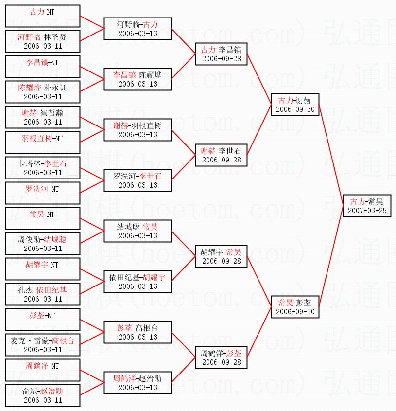 1.古力获得冠军,常昊获得亚军。决赛比分:古力2:0常昊。棋局:
