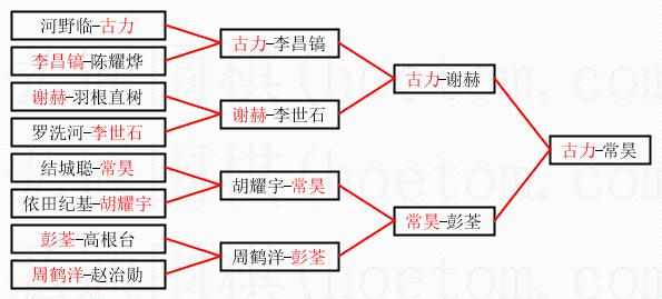 1.古力获得冠军,常昊获得亚军。决赛比分:古力2:0常昊。棋局: