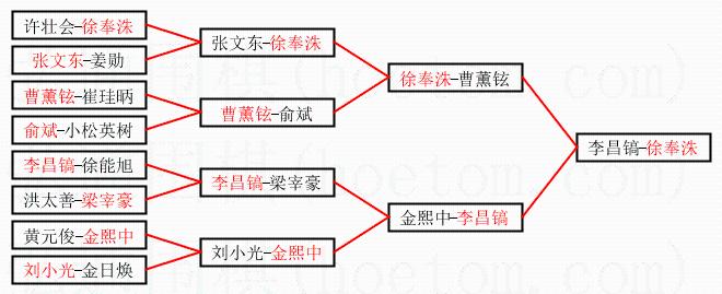 | 2.上半区半决赛徐奉洙获胜, 比分:徐奉洙 1:0 曹薰铉。棋局: | ||