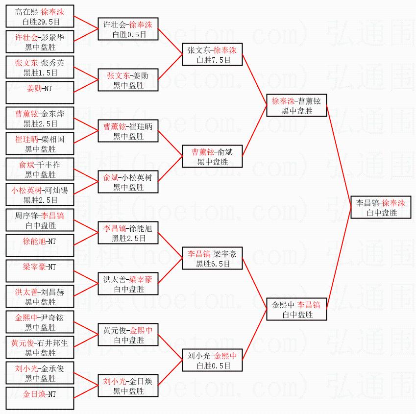 | 1.徐奉洙获得冠军,李昌镐获得亚军。决赛比分:徐奉洙3:1李昌镐。棋局: | ||