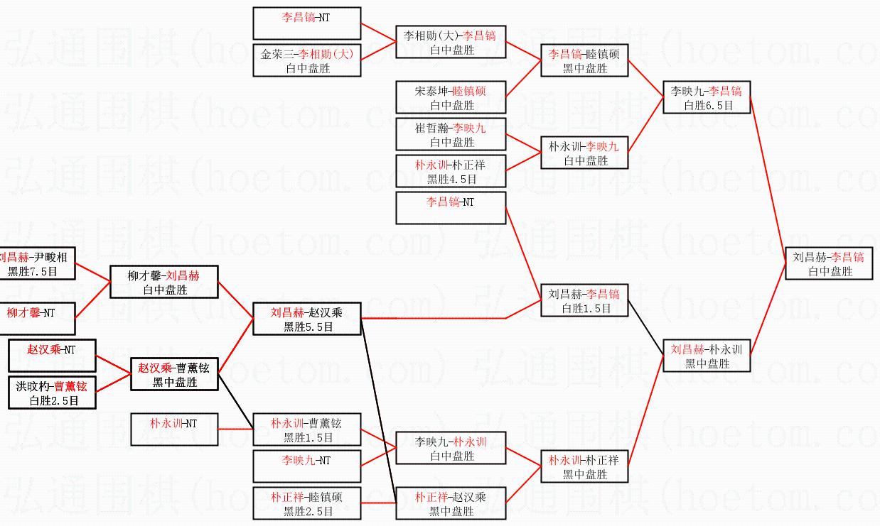 | 1.李昌镐获得冠军,刘昌赫获得亚军。决赛比分:李昌镐2:0刘昌赫。棋局: | ||