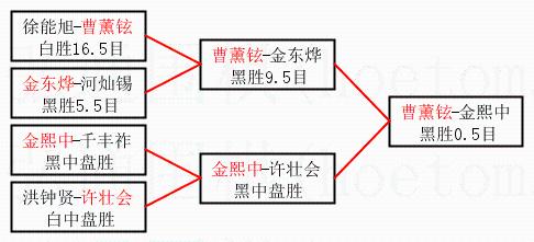2.上半区半决赛曹薰铉获胜, 比分:曹薰铉 1:0 金东烨。棋局: