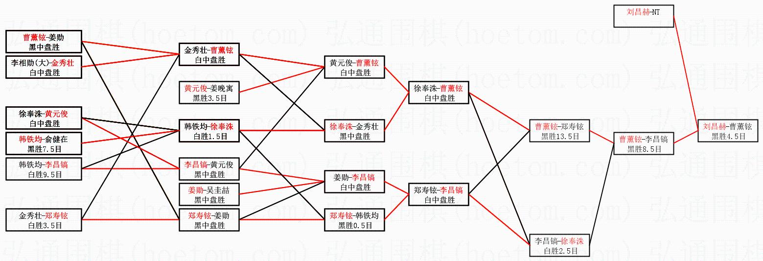 1.刘昌赫获得冠军,曹薰铉获得亚军。决赛比分:刘昌赫4:2曹薰铉。棋局: