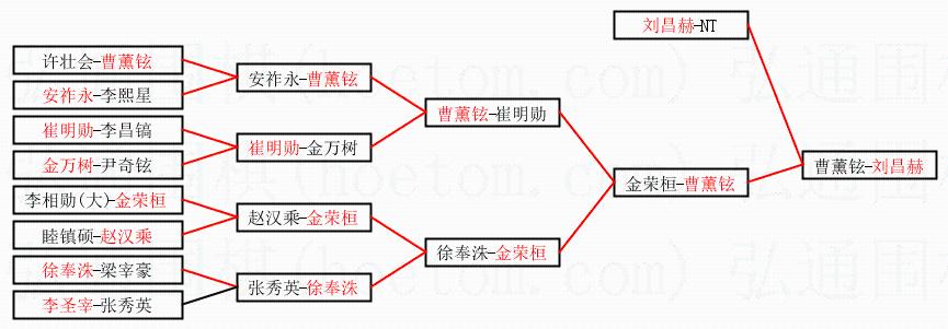 | 3.下半区半决赛曹薰铉获胜,比分:曹薰铉2:0金荣桓。棋局: | ||
