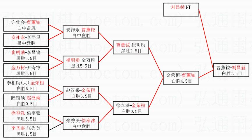 | 1.刘昌赫获得冠军,曹薰铉获得亚军。决赛比分:刘昌赫3:0曹薰铉。棋局: | ||