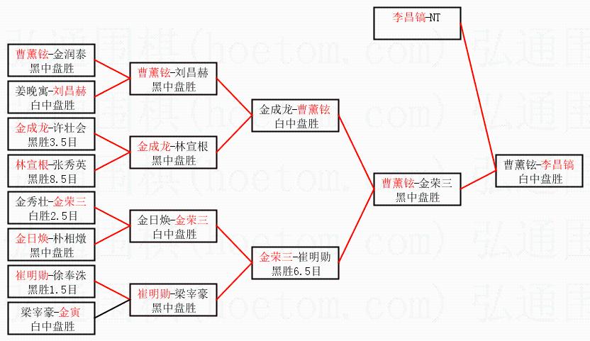 | 1.李昌镐获得冠军,曹薰铉获得亚军。决赛比分:李昌镐3:0曹薰铉。棋局: | ||