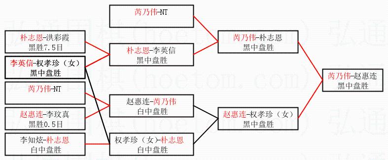 | 3.下半区半决赛赵惠连获胜,比分:赵惠连1:0权孝珍(女)。棋局: | ||