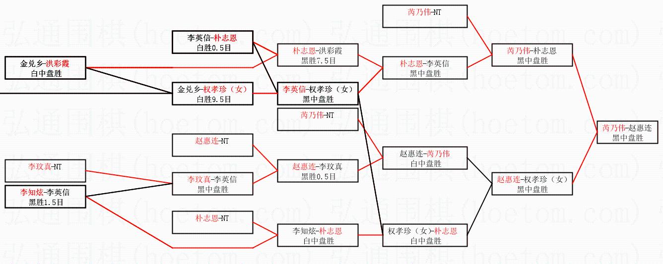 | 3.下半区半决赛赵惠连获胜,比分:赵惠连1:0权孝珍(女)。棋局: | ||