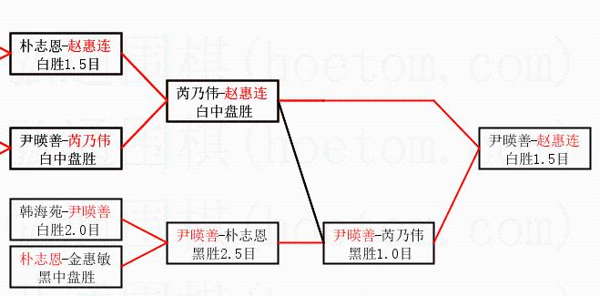 1.赵惠连获得冠军,尹暎善获得亚军。决赛比分:赵惠连2:0尹暎善。棋局: