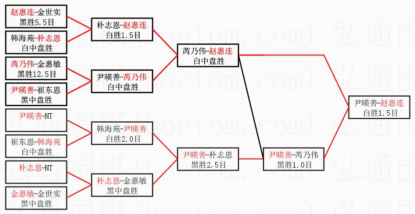 1.赵惠连获得冠军,尹暎善获得亚军。决赛比分:赵惠连2:0尹暎善。棋局: