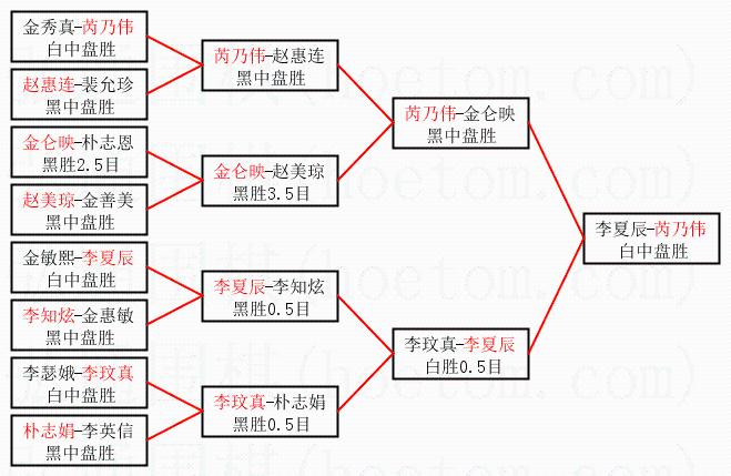 | 3.下半区半决赛李夏辰获胜,比分:李夏辰1:0李玟真。棋局: | ||