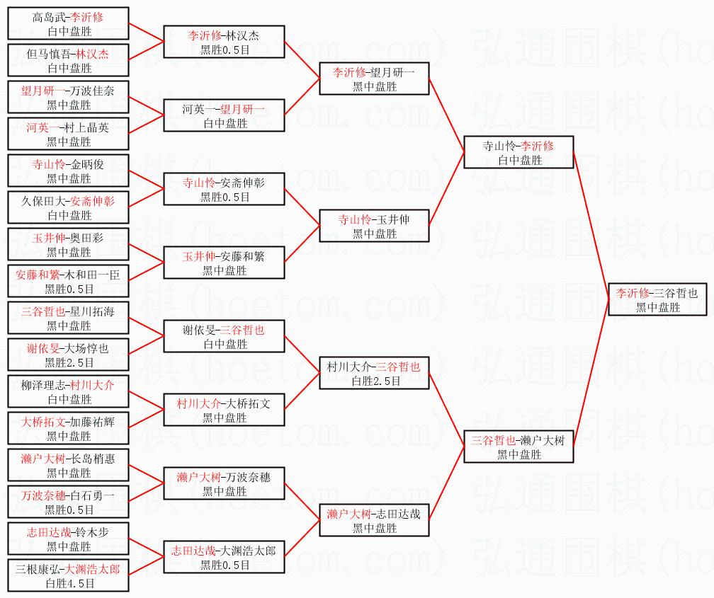 | 1.李沂修获得冠军,三谷哲也获得亚军。决赛比分:李沂修2:0三谷哲也。棋局: | ||
