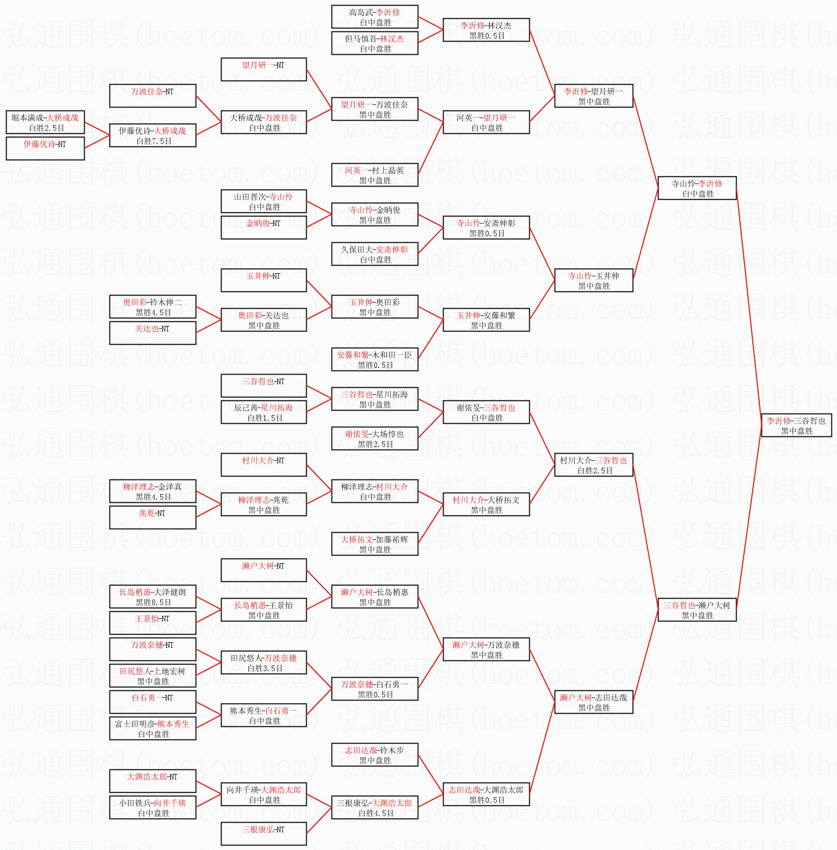| 1.李沂修获得冠军,三谷哲也获得亚军。决赛比分:李沂修2:0三谷哲也。棋局: | ||