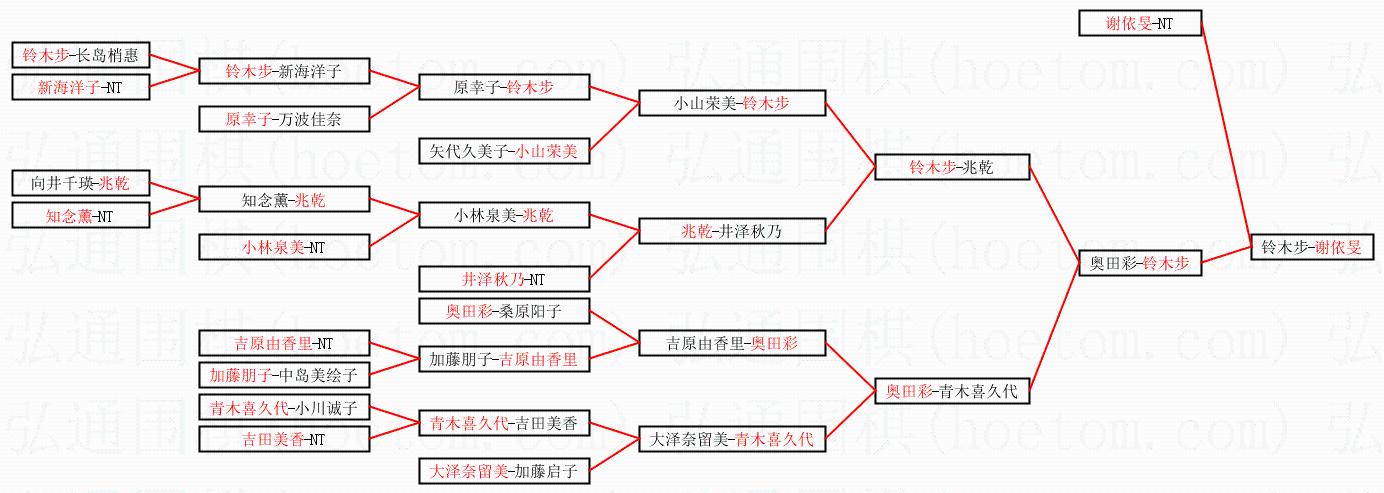 1.谢依旻获得冠军,铃木步获得亚军。决赛比分:谢依旻3:1铃木步。棋局:
