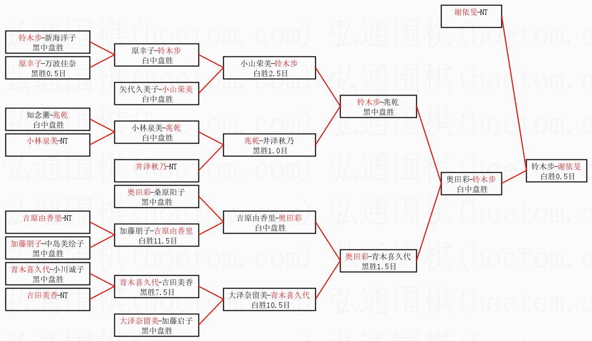 | 1.谢依旻获得冠军,铃木步获得亚军。决赛比分:谢依旻3:1铃木步。棋局: | ||