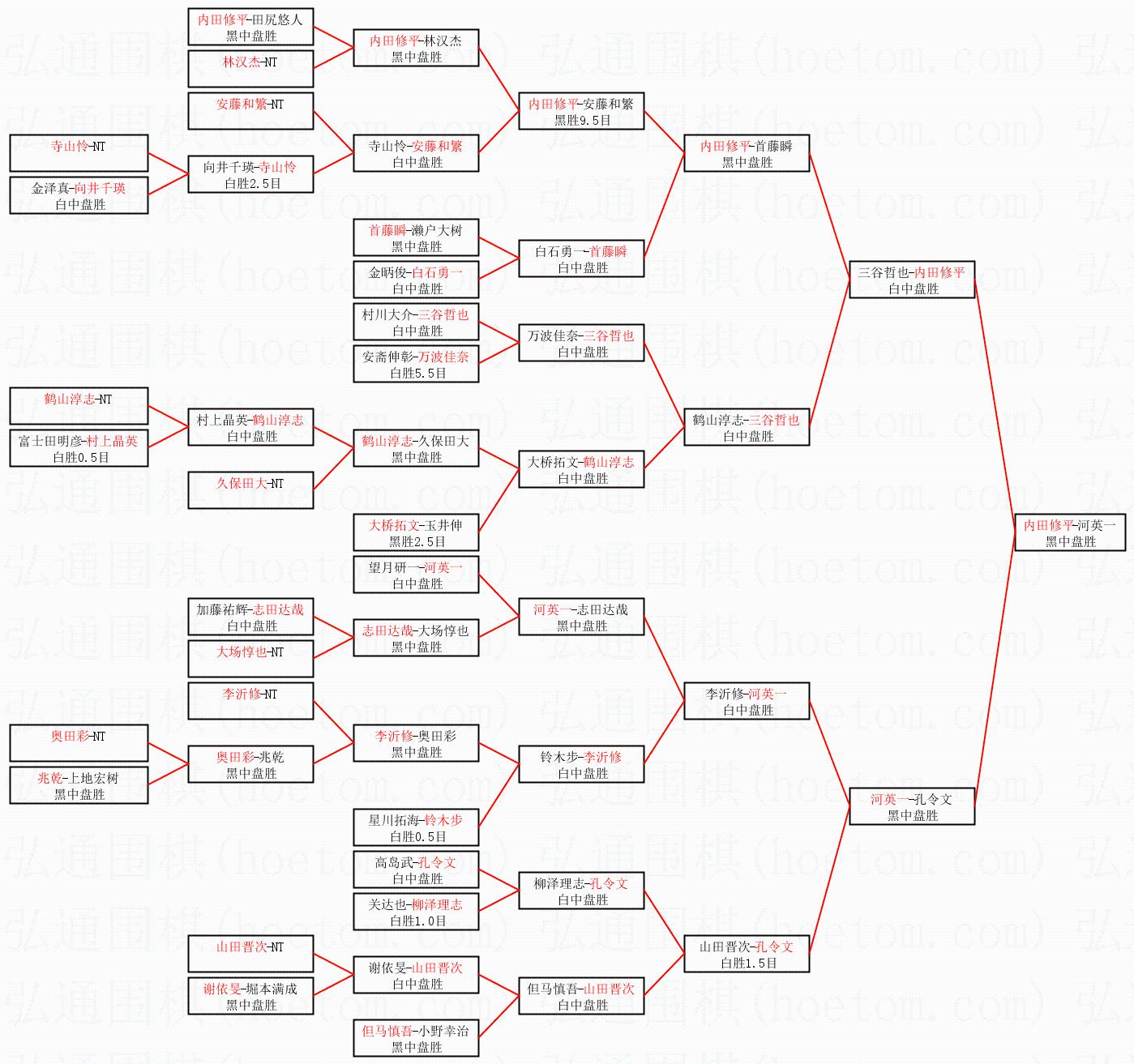 1.内田修平获得冠军,河英一获得亚军。决赛比分:内田修平2:0河英一。棋局: