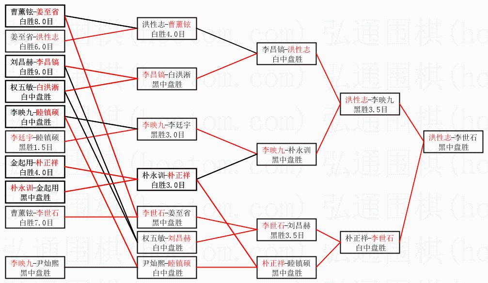 1.洪性志获得冠军,李世石获得亚军。决赛比分:洪性志2:1李世石。棋局: