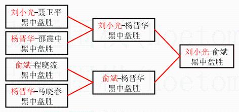 | 1.刘小光获得冠军,俞斌获得亚军。决赛比分:刘小光3:1俞斌。棋局: | ||