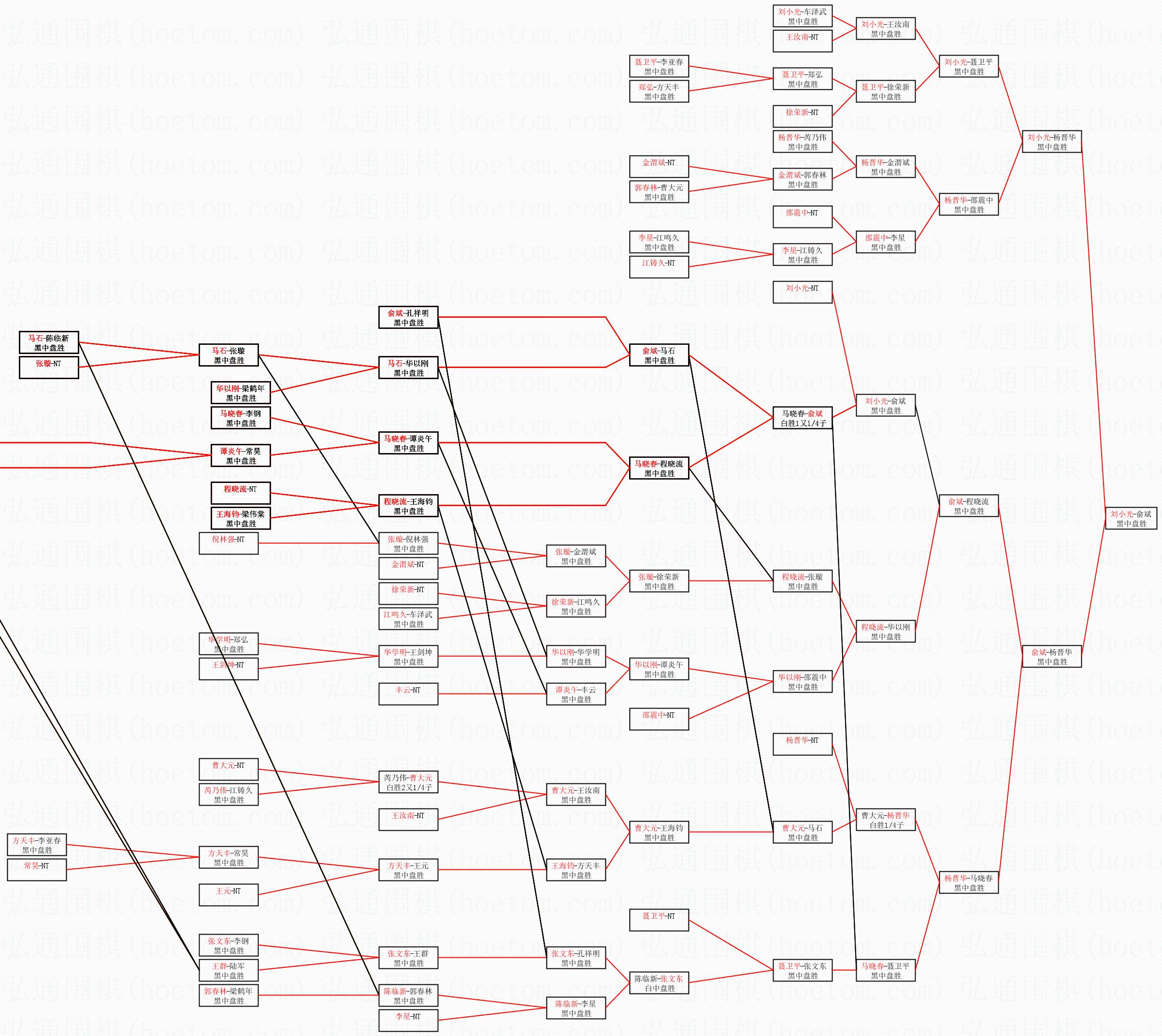 | 2.上半区半决赛刘小光获胜, 比分:刘小光 1:0 杨晋华。棋局: | ||